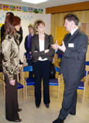 Hohen Besuch aus Wiesbaden beherbergte das Kinderhaus am Montag, den 26. Februar 2007. Die Hessische Sozialministerin Silke Lautenschläger war angereist, um sich vor Ort einen Eindruck von der Umsetzung des Hessischen Bildungs- und Erziehungsplans zu machen.